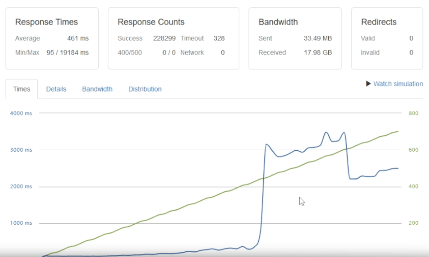 - Min/Max Response Time: 99ms / 10,318ms